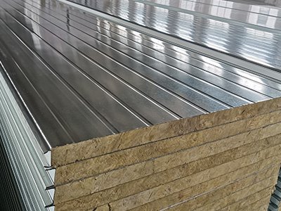 鍍鋅巖棉夾芯板其上下表面采用一面鍍鋅板一面彩鋼板或雙面鍍鋅鋼板,厚度為0.4-0.8mm。通過自動化連續(xù)成型機,經(jīng)壓型后用高強粘合劑粘合而成。巖棉塊交錯鋪設(shè),其纖維走向垂直于鍍鋅巖棉夾芯板的上下表面,并緊密相接充實了鍍鋅巖棉板的整個縱橫截面。巖棉塊之間和巖棉與上、下層鋼板之間通過高強度發(fā)泡劑粘接復(fù)合而成。鍍鋅巖棉夾芯板有很強的剛度,具有防火、保溫、隔音、隔熱等性能。
